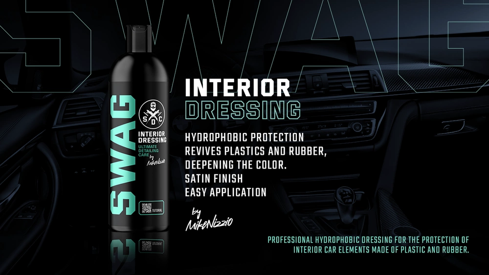 Swag INTERIOR DRESSING CREAM SATINE+ V.2 jest to profesjonalny, hydrofobowy dressing o nowej kremowej formule do konserwacji wewnętrznych elementów pojazdu, wykonanych z tworzyw sztucznych i gumy. Został stworzony dla Studiów Detailingowych i Entuzjastów autokosmetyki, którzy poszukują skutecznego środka do zabezpieczenia powierzchni kokpitu, boczków drzwi, słupków, listew wykańczających i uszczelek gumowych, przed negatywnymi czynnikami degradującymi.