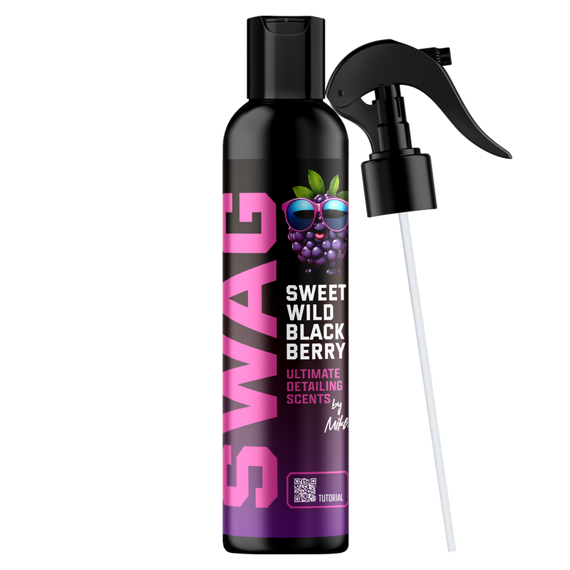 - Pierwsza aplikacja: Spryskaj obficie zapachem SWAG SWEET WILD BLACKBERRY na dołączoną do zapachu zawieszkę (aż stanie się wilgotna i lekko spuchnie) i inne tekstylne elementy wnętrza pojazdu.