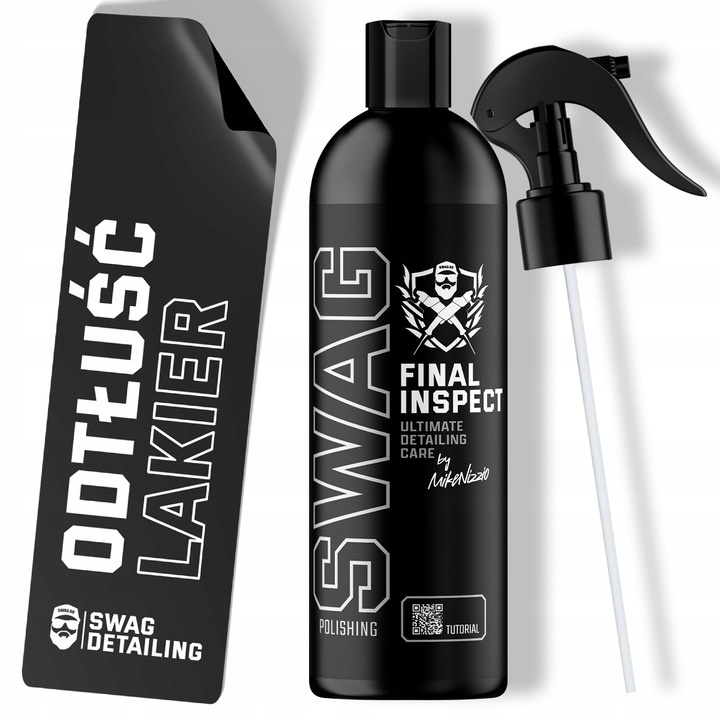 - Swag FINAL INSPECT V.2 jest ostateczną i najskuteczniejszą formą odtłuszczającą, niezbędną szczególnie w końcowym etapie korekty lakieru i jego inspekcji. Jest to także najlepszy wybór do preparowania lakieru przed aplikacją powłoki ceramicznej bądź usuwania starych powłok woskowych i glaze’ów.