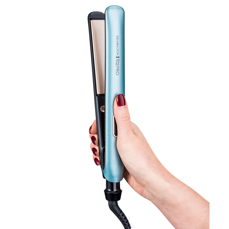 Prostownica Shine Therapy PRO wyposażona jest w potrójną technologię uwydatniającą połysk, która eliminuje elektryzowanie się włosów, co zapewnia zdrowo wyglądające i błyszczące włosy.